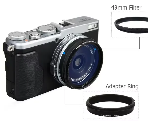 MODELO:  Parasol de lente JJC c/ anel adaptador para Fujifilm X100 Inclui anel adaptador AR-X100