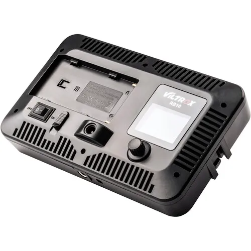 Esta luz possui uma rosca de montagem de 1/4"-20 e inclui uma sapata fria. A luz RB10 pode ser alimentada por uma bateria do tipo Série L, disponível separadamente, ou por um adaptador CA. Além da sapata, esta luminária inclui um difusor para suavizar a saída de luz.