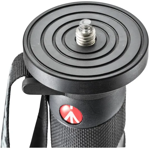 As seções de perna em forma de D foram projetadas não apenas para complementar as Power-Locks, mas também para evitar torções indesejadas entre as seções das pernas e aumentar a estabilidade do monopé. Além disso, a linha Monopé + também possui a perna de borracha padrão da Manfrotto para uma melhor aderência e uma alça de mão ajustável para maior segurança. Uma rosca de montagem de 1/4 - 20 e 3/8 - 16 é colocada na parte superior do monopé no centro da placa de base, permitindo que os usuários montem diretamente uma câmera ou lente ou usem uma cabeça articulada, se necessário .