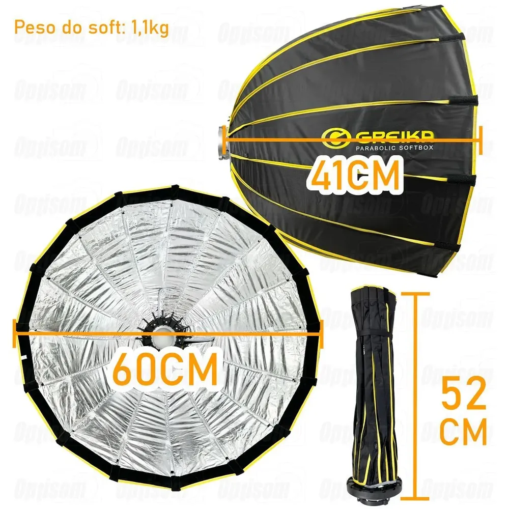 MODELO:  GKP 60 Softbox Parabólico Greika Dia 60cm s/ Grid